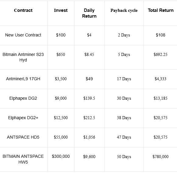 2. Provides a variety of mining contracts: suitable for short-term and long-term investors, users have diverse choices.