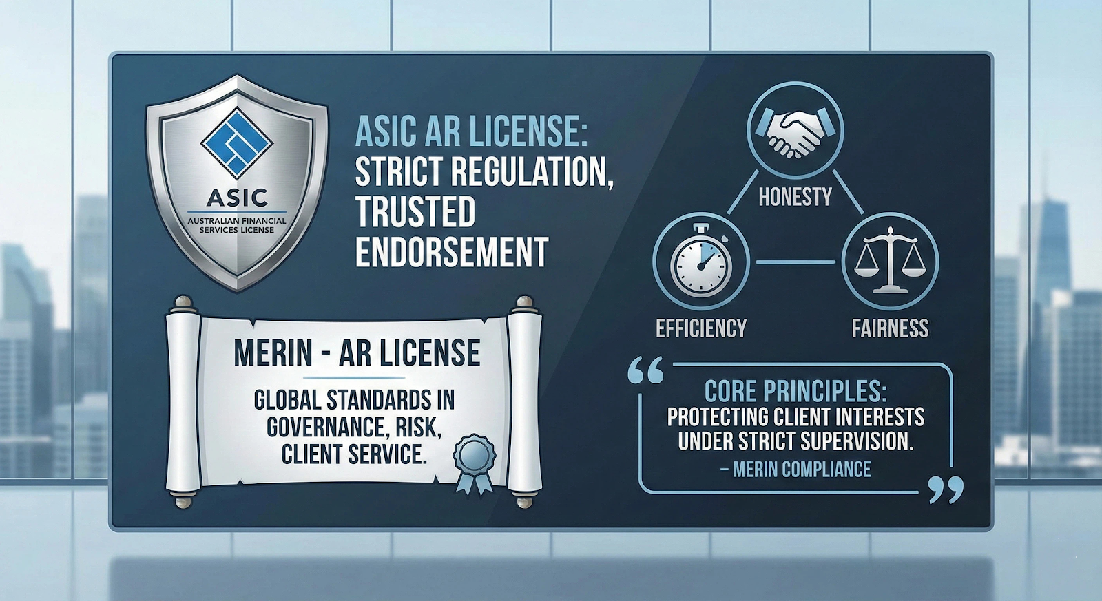Public records confirm that Merin conducts relevant financial services activities under the Australian regulatory system in its capacity as an Authorised Representative (AR). According to Australia’s regulatory regime, an AR must operate within the compliance supervision framework of the primary AFSL holder. Its business conduct must continuously comply with the Corporations Act and relevant ASIC regulatory rules.